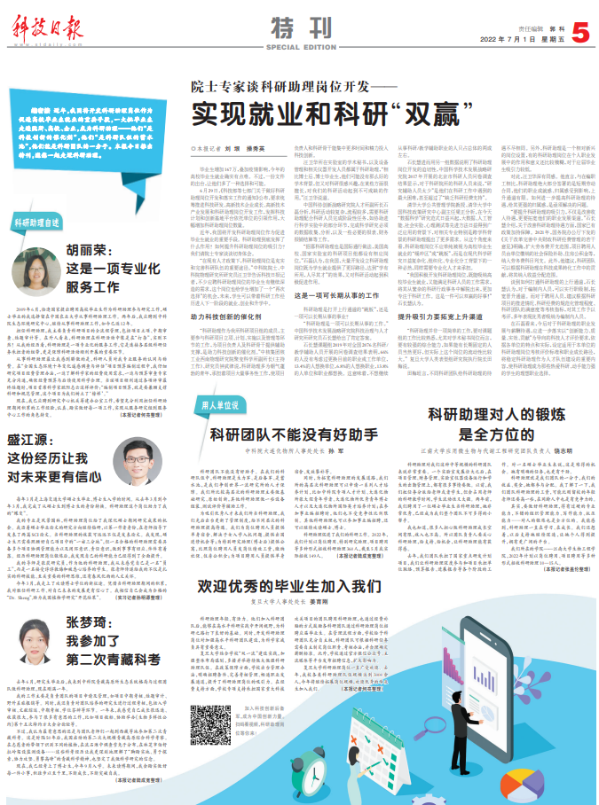 “我国积极开发科研助理岗位,既能吸纳高校毕业生就业,又能满足科研人员的工作需求,将其从繁杂的科研行政事务中解脱出来,更加专注于科研工作。这是一件可以双赢的好事!”石长慧认为。