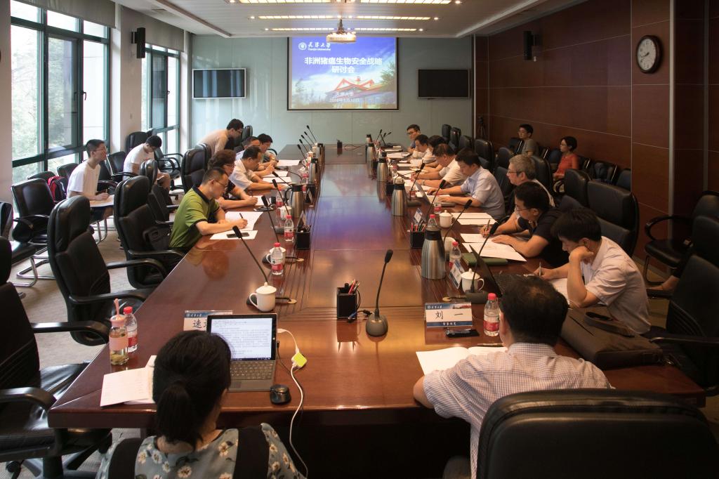 中国农业农村部8月3日发布疫情信息,辽宁省沈阳市沈北新区发生一起非洲猪瘟疫情。据了解,这是中国首次发生非洲猪瘟疫情。疫情发生后我校生物安全战略研究中心快速反应,组织团队开展风险对策研究。为进一步研讨非洲猪瘟疫情可能给我国带来的风险及应对措施,8月12日,我校召开非洲猪瘟生物安全战略研讨会。天津海关(原出入境检验检疫局)副局长冯斌,哈尔滨兽医研究所猪传染病研究室主任仇华吉,天津海关动物植物与食品检测中心副主任董志珍,哈尔滨兽医研究所研究员赵东明,天津海关动植物与食品检测中心病毒学专家王乃福,天津大学副校长元英进出席了会议,天津大学人文社科处、化工学院、生命学院、法学院、计算机学院、马克思主义学院的相关师生参加会议,会议由天津大学社科处处长、文科办主任张俊艳主持。