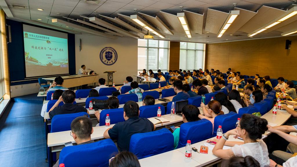 (通讯员 郭璟 刘艳)按照天津大学第三次科技工作会议筹备工作的整体安排,7月4日教育部科技司司长雷朝滋应邀莅临我校指导工作,并作了关于“科技创新与‘双一流’建设”的专题报告。报告阐述了对“一流大学”、“一流学科”、“一流人才”的深刻理解,明确了新时代高校科技创新的使命,对我校“双一流”建设和即将召开的第三次科技工作会议具有十分重要的指导意义。天津大学副校长元英进主持会议,各学院(部)和科学技术发展研究院、区域发展研究院、人文社科处相关负责同志、长江学者、国家杰出青年基金获得者、学科带头人和科研管理人员等聆听了讲座。