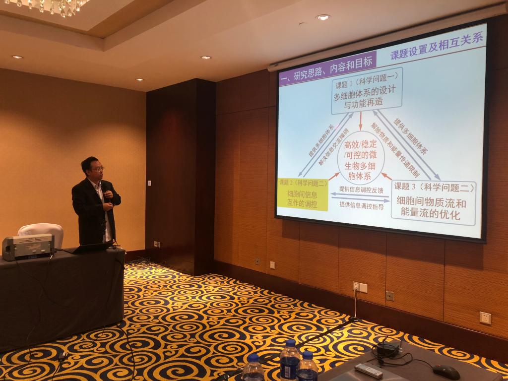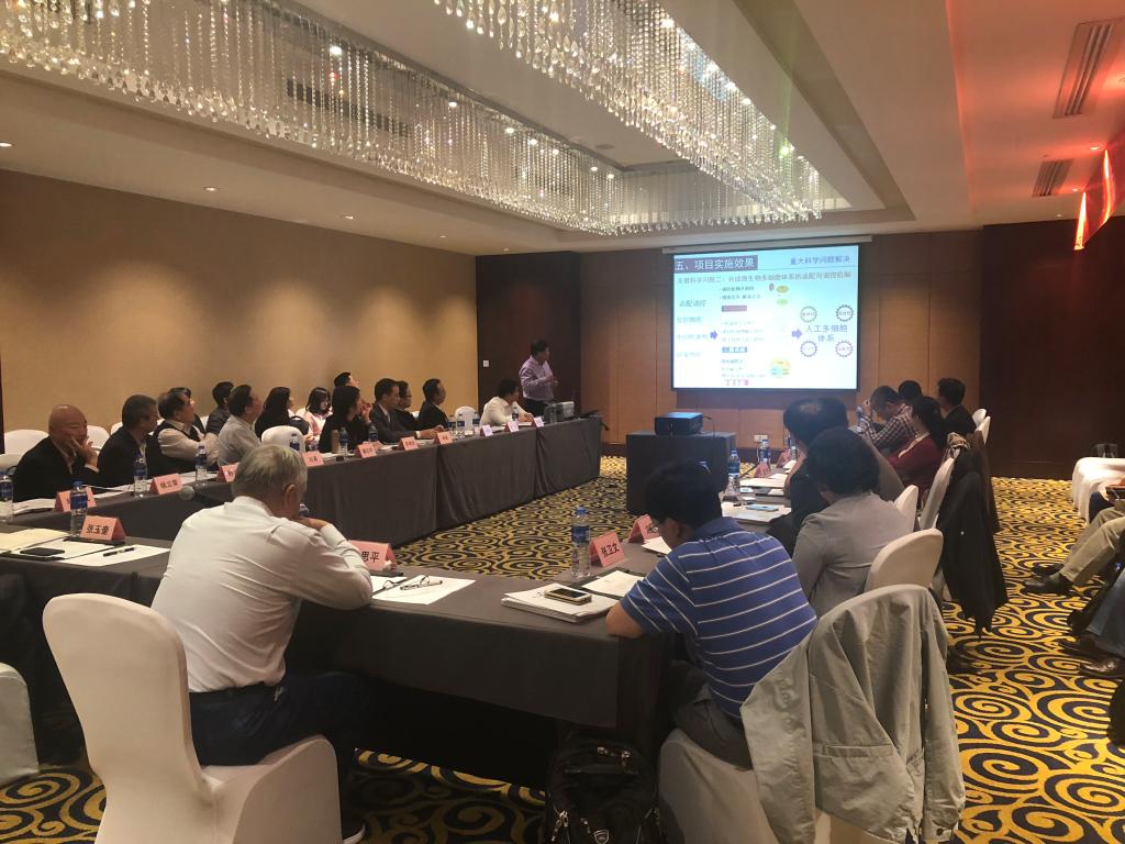 2018年10月14日,由天津大学主持承担的科技部973计划项目“微生物多细胞体系的设计与合成”(项目编号:2014CB745100)课题结题验收会在天津召开。会议由项目首席科学家天津大学元英进教授主持并任课题验收专家组组长。课题验收专家组成员包括:973计划领域专家咨询组责任专家中国科学院大连化学物理研究所张玉奎院士、深圳大学陈思平教授,项目专家组成员北京化工大学谭天伟院士、北京大学吴晓磊教授、江南大学堵国成教授、天津大学张卫文教授,特邀同行专家(973首席)南开大学刘育教授、深圳大学第一附属医院蔡志明教授、清华大学陈国强教授、上海交通大学冯雁教授、浙江大学杨立荣教授、北京林业大学孙润仓教授,以及项目依托部门管理专家教育部科技司基础处李人杰副处长、天津市科委基础处金双龙处长等共15人。科技部基础研究管理中心张辰博士,天津大学科研院常务副院长崔振平院长,本项目课题负责人杨晟研究员、苏海佳教授,以及项目组骨干成员天津大学宋浩教授、天津大学马军安教授等共40余人参加了验收会。