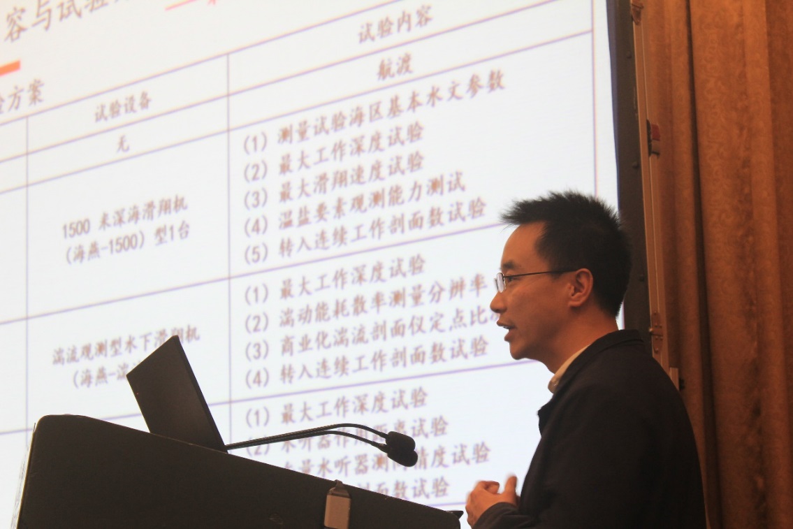 “长航程水下滑翔机研制与海试应用”项目首席科学家王延辉教授介绍了项目的总体情况,详细汇报了海试大纲和指标测评方案,专家组听取汇报后,通过对海试大纲中的要点进行质询,形成最终专家意见,与会专家一致同意项目海试大纲通过评审。