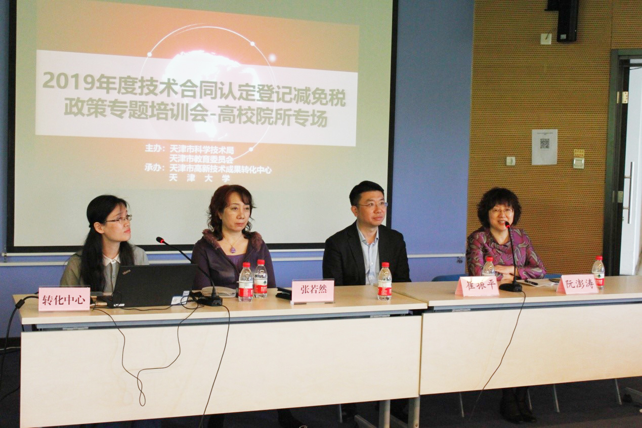 本站讯(通讯员 高华丰)近日,由天津市科学技术局和天津市教育委员会共同主办,天津市高新技术成果转化中心、天津大学承办的“2019年度技术合同认定登记减免税专题培训会——高校院所专场”在天津大学顺利召开。