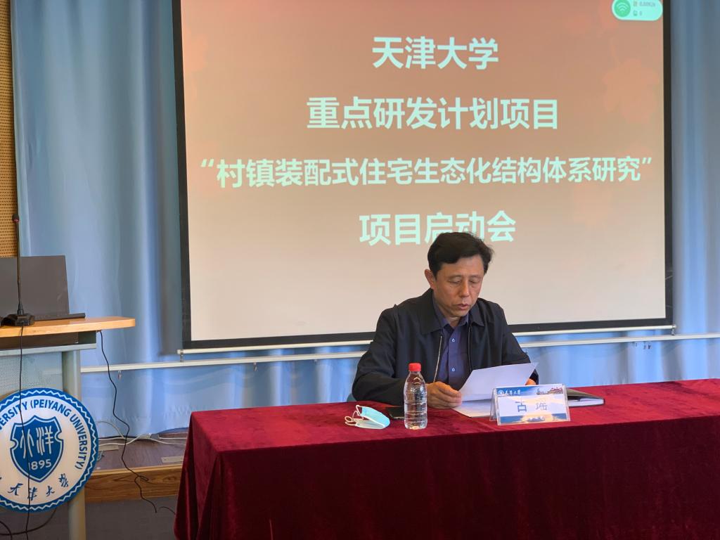 古瑶代表项目牵头单位致欢迎辞,强调该重大项目不仅是天津大学村镇生态住宅领域的重大突破,也是天津大学跨学科交叉融合的标志性成果,他表示天津大学将切实落实法人责任,全力支持项目开展研究工作,做好协调和支撑保障,确保项目顺利开展和各项任务圆满成功。