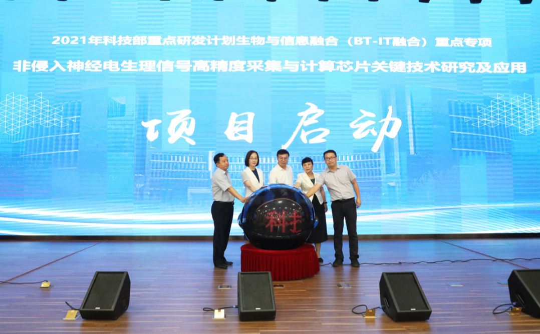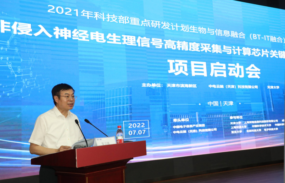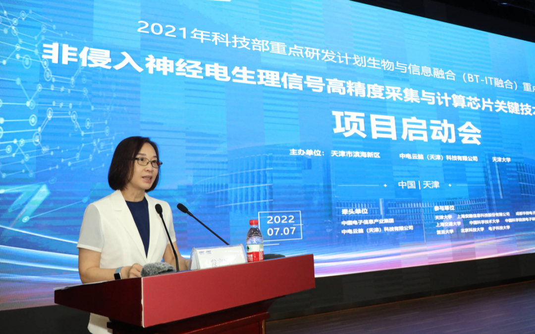 2022年7月7日,由天津大学医学工程与转化医学研究院副院长刘秀云教授担任首席科学家,依托中国电子信息产业集团中电云脑(天津)科技有限公司申报的国家重点研发计划“非侵入神经电生理信号高精度采集与计算芯片关键技术研究及应用”项目启动会暨实施方案论证会顺利召开。会议采用线上线下相结合的方式进行,主会场设在高新区海泰大厦,各课题承担单位设分会场。