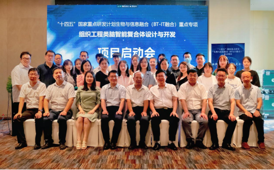 “组织工程类脑智能复合体设计与开发”项目于2021年12月立项,项目总经费 2745万元。项目集结了国内10家在神经 BT-IT 融合方向的产学研优势科研单位,围绕解析神经科学与计算机智能融合交互重大需求,研究基于脑类器官复合体探究体内外生物与信息融合交互机制的重大科学问题,构建脑类器官智能复合体,搭建体内外脑类器官BT-IT交互验证平台,实现基于IT调控的脑类器官成熟度提升、基于BT启发的类脑计算新算法新模型以及基于 BT-IT融合的移植宿主脑损伤修复。