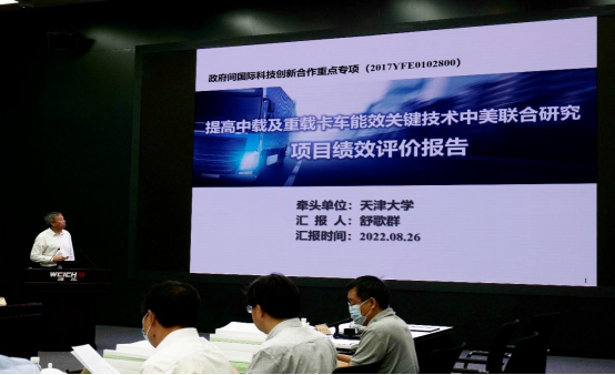 国家重点研发计划-政府间国际科技创新合作重点专项“提高中载及重载卡车能效关键技术中美联合研究”项目于2018年立项,由天津大学牵头,联合了清华大学、同济大学、潍柴动力股份有限公司、广西玉柴机器股份有限公司、中国重型汽车集团有限公司、中国汽车工程研究院股份有限公司等多家国内优势单位。项目建立了高密度低温燃烧等先进内燃机燃烧理论,取得了高效重载柴油机技术、中载压燃汽油机技术、超临界CO2余热回收技术和车队智能运维技术等代表性成果,集成关键节能技术的演示样车在整车能源效率得到大幅度提高,为交通领域“碳达峰碳中和”国家战略实施提供了重要技术支撑。