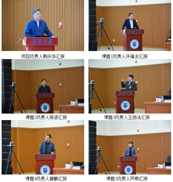 项目负责人韩庆华教授汇报了项目基本情况和研究意义、研究目标和技术路线、任务分解和研究内容、关键节点和实施计划、管理机构和管理制度、预期成果和考核方式等内容。课题一负责人大连理工大学许福友教授、课题二负责人重庆大学陈波教授、课题三负责人中国地震局工程力学研究所王自法研究员、课题四负责人天津大学曾鹏教授、课题五负责人天津大学芦燕教授分别就5个课题的实施方案进行了详细汇报。