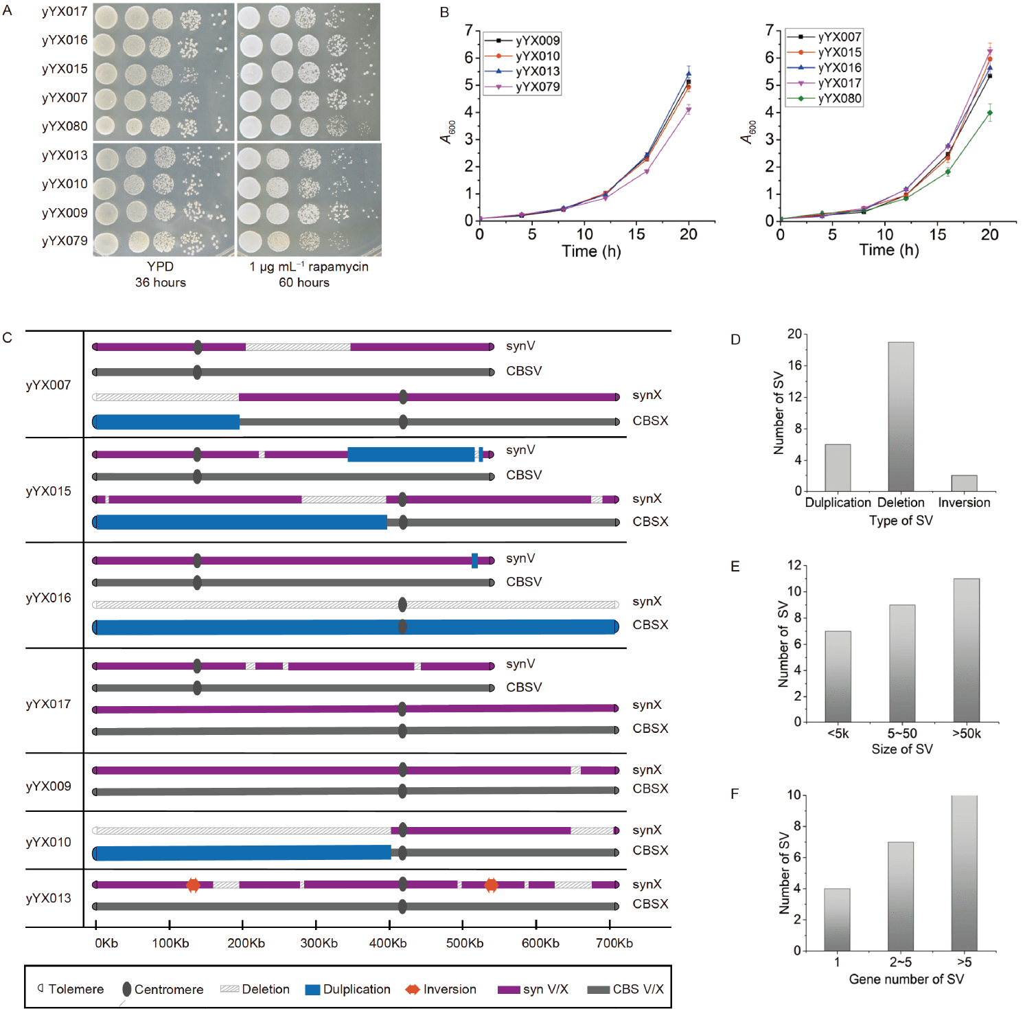此次,该研究通过比较两种不同的进化方式(人工基因组重排进化和天然快速适应性进化)研究了酵母雷帕霉素耐受表型进化的遗传基础。以杂合二倍体酵母作为研究对象,首次发现了由人工基因组重排引发的不同尺度的基因组杂合性缺失现象,包括小范围杂合性缺失、大范围杂合性缺失和全染色体杂合性缺失。与此相对应,快速适应性进化的菌株中高频率检测到基因组非整倍体现象。通过独立构建相应杂合性缺失的菌株和非整倍体的菌株,揭示了不同尺度杂合性缺失和八号染色体加倍与雷帕霉素耐受增强表型的关系。
