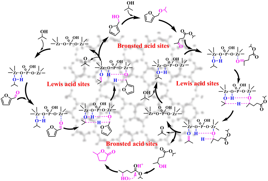 开发木质纤维素类生物质原料驱动的可持续绿色能源体系是应对传统能源紧缺问题的重要手段。半纤维素衍生化学品糠醛是一种极具应用前景的多功能生物质平台分子,基于化学催化途径糠醛能够进一步转化制备一系列高附加值化学品和液体燃料。其中,乙酰丙酸烷基酯及其衍生γ-戊内酯的高选择性靶向制备被认为是糠醛定向催化体系的核心反应之一,而高性能多功能催化剂的设计制取则是实现该反应性能提升的关键。