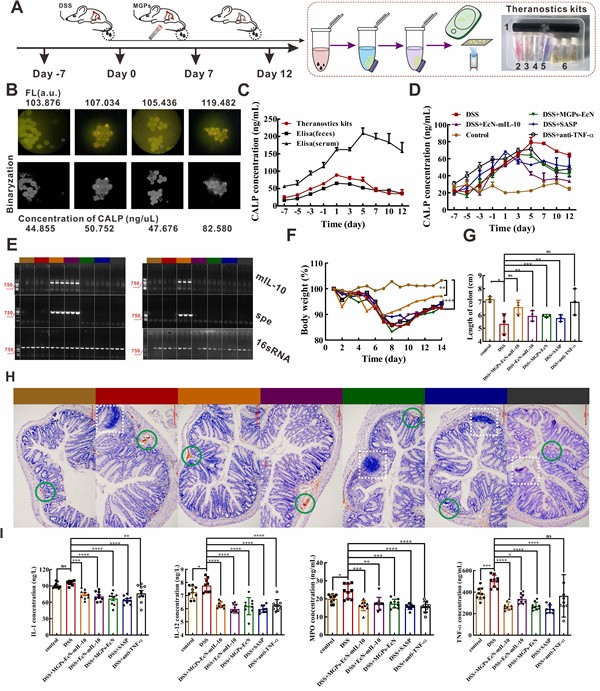 3)慢性疾病模型的系统功能验证:在小鼠结肠炎模型中,该系统的机体免疫调节特性得到了很好的效果验证。从相应病症的防控角度入手均实现了病程的延缓与阻滞。