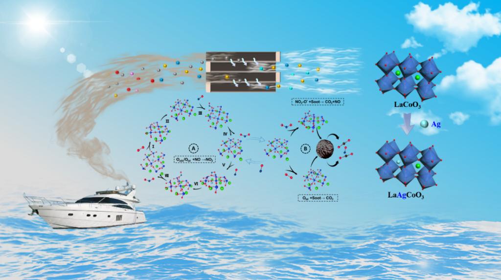 船舶柴油机废气排放是全球大气污染的主要来源之一。其中氮氧化物(NOx)和颗粒物(PM)作为主要污染物构成严重的环境威胁,增加了人类健康的风险。鉴于船舶航运的特殊性,DPF采用被动再生技术显得十分必要。催化氧化技术作为一种最有希望应用于船舶尾气中DPF被动再生的技术,是柴油机碳烟催化燃烧领域的一个重要研究课题。钙钛矿氧化物因其低成本、高热稳定性和结构可灵活调变,在碳烟颗粒物的氧化和NOx还原中发挥着双重作用。然而,目前对钙钛矿B位阳离子与氧空位的协同作用机理还缺乏深入的研究;此外,钙钛矿表面的活性中心在碳烟催化燃烧中的作用尚不清楚。