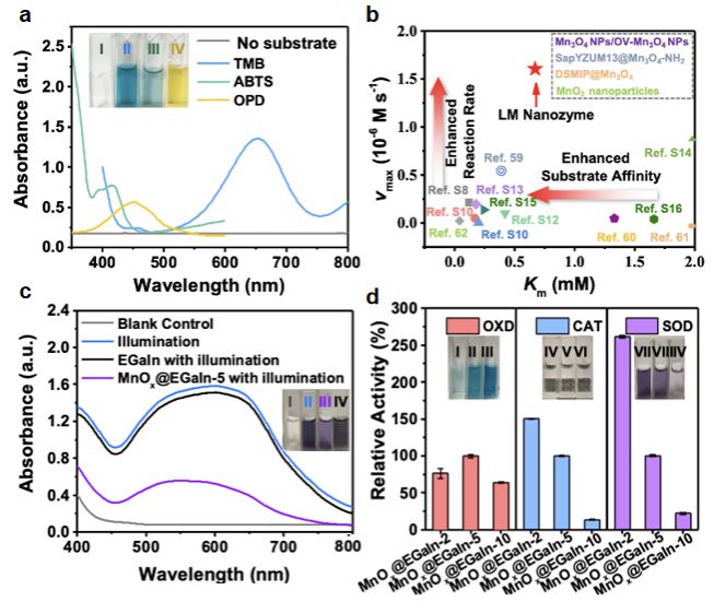 图3 具有OXD、CAT和SOD多酶活性的MnOx@EGaIn纳米酶