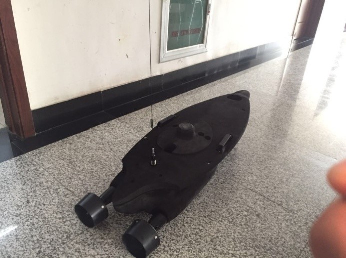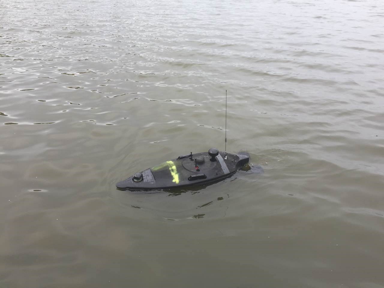 水陆两栖小型水面无人船是依靠遥控和自主航行的无人、智能化观测平台,内置两套螺旋浆推进模块,机动性高,航速大,高速可达5m/s,搭载高能可充电锂离子电池组,最大续航8小时,内置无线通讯及卫星通讯双通讯系统,无线通讯可达10公里,内置高精度GPS定位系统,实时显示无人船体位置,内置前视测距模块,实时定位前方障碍物距离并进行及时的避障。无人船采用泡沫材料,质量轻浮力大,整体质量25Kg,适合一至两人操作,可搭载多种传感器进行深度测量、地形探测、管路检查、泥位测量、水质监测等工作。