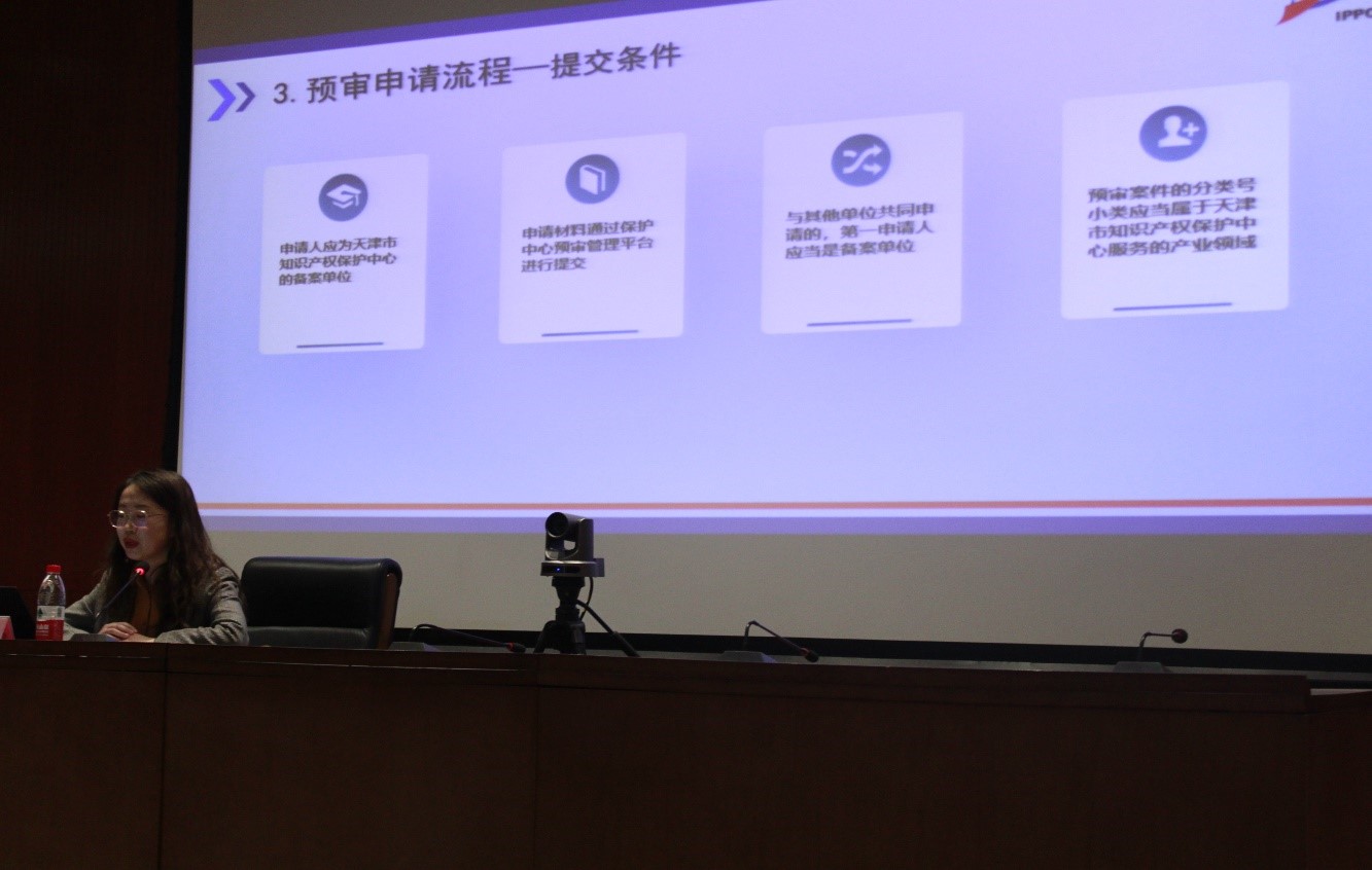 天津市知识产权保护中心预审员薛静围绕专利申请主体备案、快速预审案件申请流程、专利快速预审案件撰写等业务进行了全面细致的宣讲,结合实际预审案例中的典型问题一一提出解决措施。并表示希望通过专利快速预审“赋能”天津大学专利高质量发展。